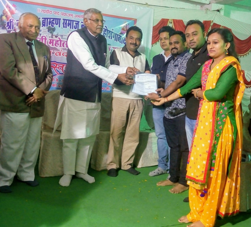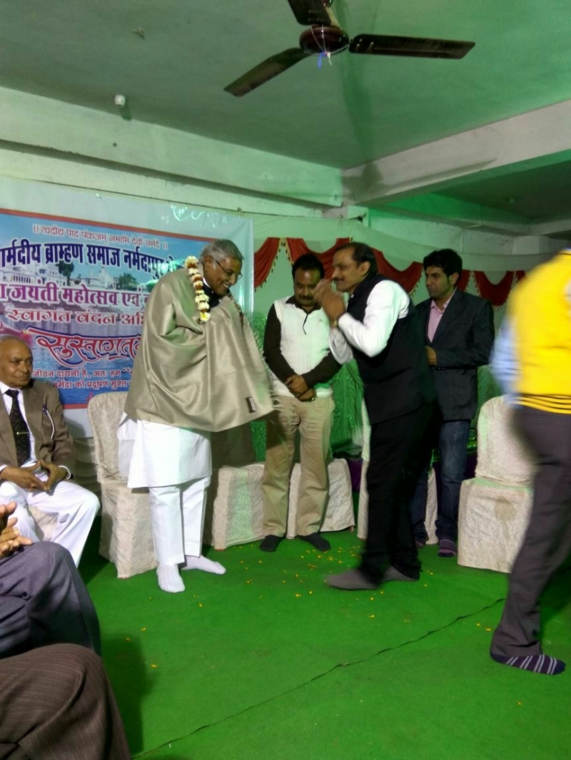 दिनाँक 11 फरवरी 2018 को श्री नार्मदीय ब्राह्मण समाज होशंगाबाद का वार्षिकोत्सव एवं स्नेह-मिलन का आयोजन किया गया इस अवसर पर विधानसभा अध्यक्ष डॉ सीतासरन शर्मा , इटारसी नगरपालिका के सभापति श्री भरत भाई, सांसद प्रतिनिधि श्री शशांक पुरोहित , समाज के वरिष्ठ श्री काशीनाथ उपाध्याय भोपाल श्रीमति शैलजा राजवैध समाज सेविका भोपाल,श्रीमति हेमलता पुरोहित इटारसी एवं श्री प्रकाश पगारे टेलीविजन हास्य कलाकार भोपाल उपस्थित हुए। श्री मनमोहन पगारे इटारसी ने अपनी शानदार पहल से डॉ शर्मा जी द्वारा विधायक निधि से रुपये 2,00,000.00 एवं श्री शशांक पुरोहित जी द्वारा सांसद निधि से रुपये 1,00,000.00 नार्मदीय समाज होशंगाबाद की धर्मशाला निर्माण हेतु देने की घोषणा की इस अवसर पर अपर सचिव श्री काशीनाथ उपाध्याय जी ने धर्मशाला में टयूबवेल हेतु रुपये 51,000.00 एवं श्रीमति शैलजा राजवैध ने 21,000.00 रुपये देने की घोषणा की । सभी अतिथियों का स्वागत अध्यक्ष श्री काशिव सर एवं सामाजिक सदस्यों द्वारा किया गया । बच्चों ने शानदार सांस्कृतिक कार्यक्रम प्रस्तुत किये । महिला मंडल ने हल्दी-कुमकुम किया अंत में सभी प्रतियोगिताओं के प्रतिभागियों को पारितोषिक प्रदान किये गए । कार्यक्रम के अंत आभार व्यक्त करते हुए श्री काशिव सर ने अतिथियों,सामाजिक सदस्यों के साथ मनमोहन पगारे जी को उनके द्वारा की गई पहल हेतु विशेष आभार ज्ञापित किया । श्री मनमोहन पगारे जी ने अपने पिताजी एवं माताजी की याद में अतिथियों एवं प्रतिभाओं को स्मृति- चिह्न देकर सम्मानित किया।